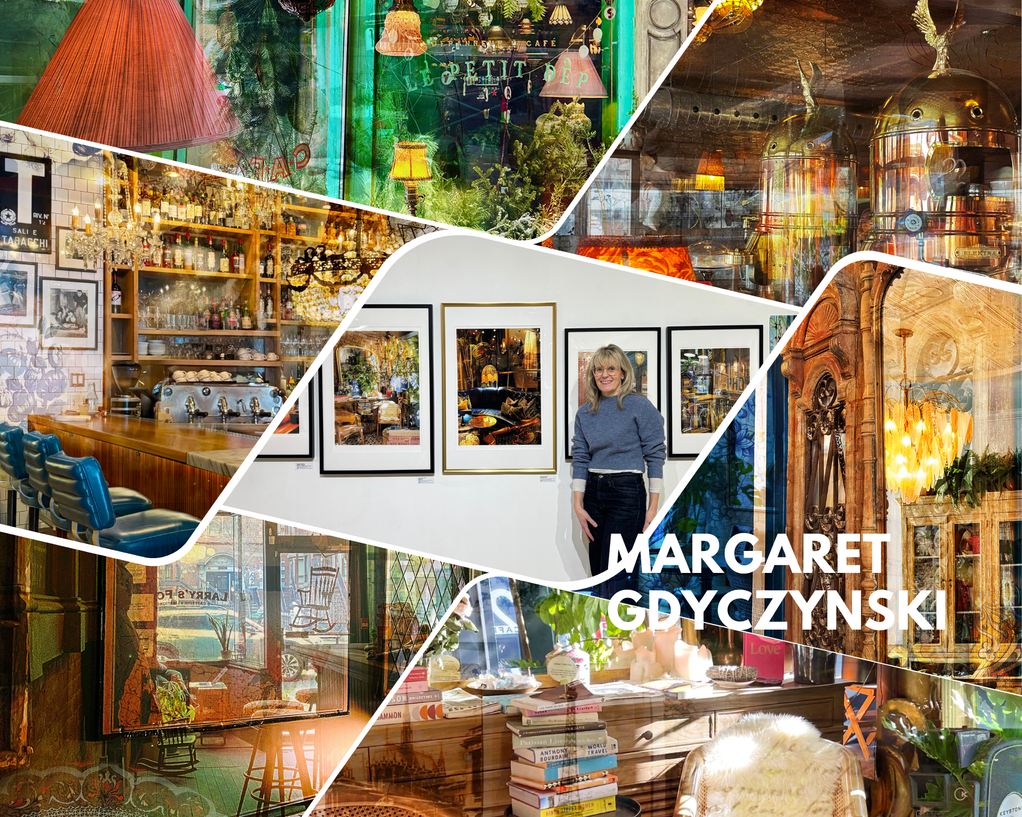 I translate these sensory experiences when I layer photographs and blend them to create luminosity or overlay using multiple images. Each layer allows the light to screen different parts of a photograph illuminating one area and darkening another. Elements in the photos are enlarged to highlight details that would evoke a sense of smell, for example an espresso machine or a worn leather chair.