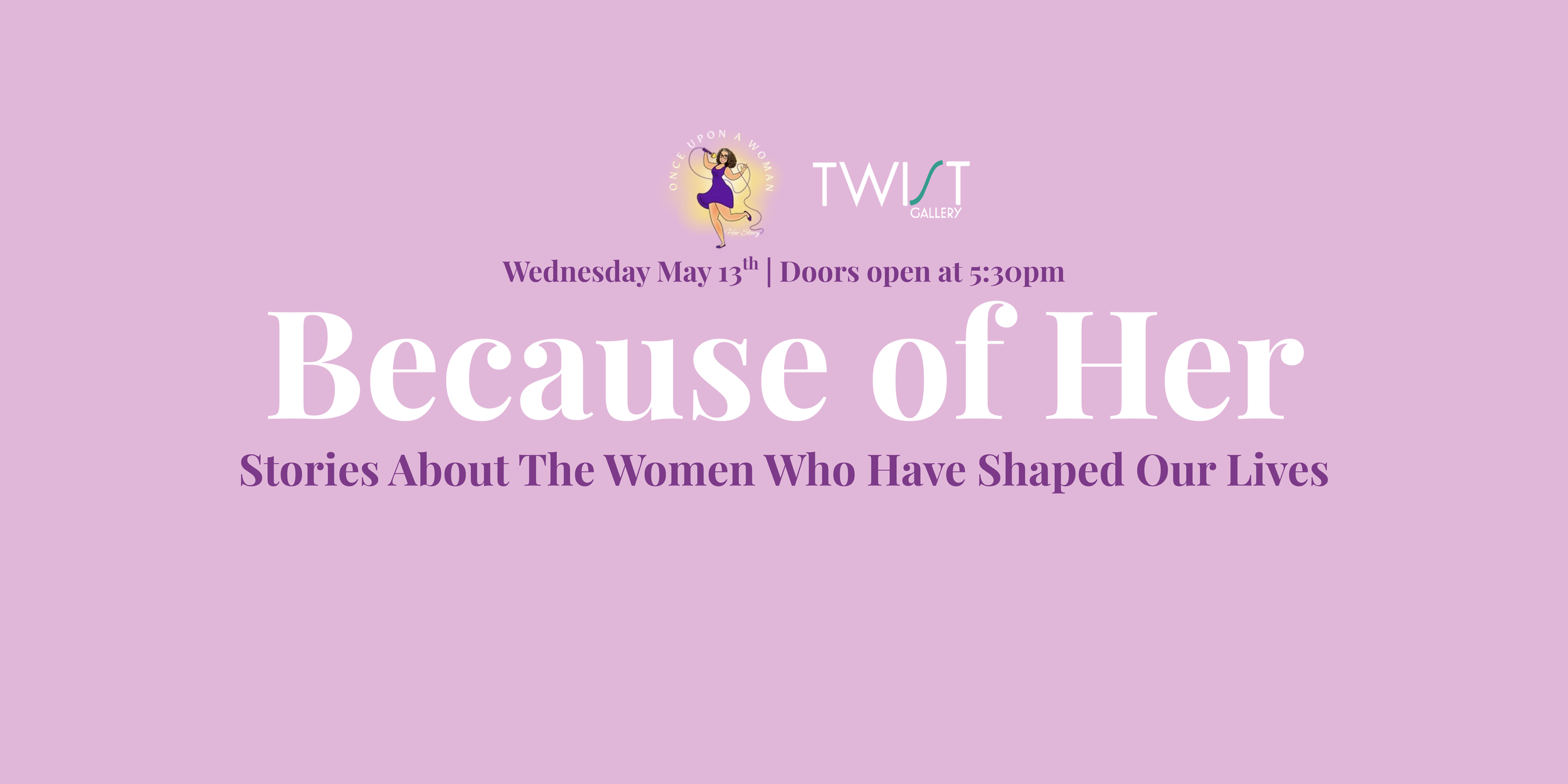 Because of Her Wednesday, May 13, 2026 7:00 PM 9:00 PM Twist Gallery 1100 Queen Street West Toronto Canada (map) Google Calendar ICS Get Tickets Here! Get Tickets Here!